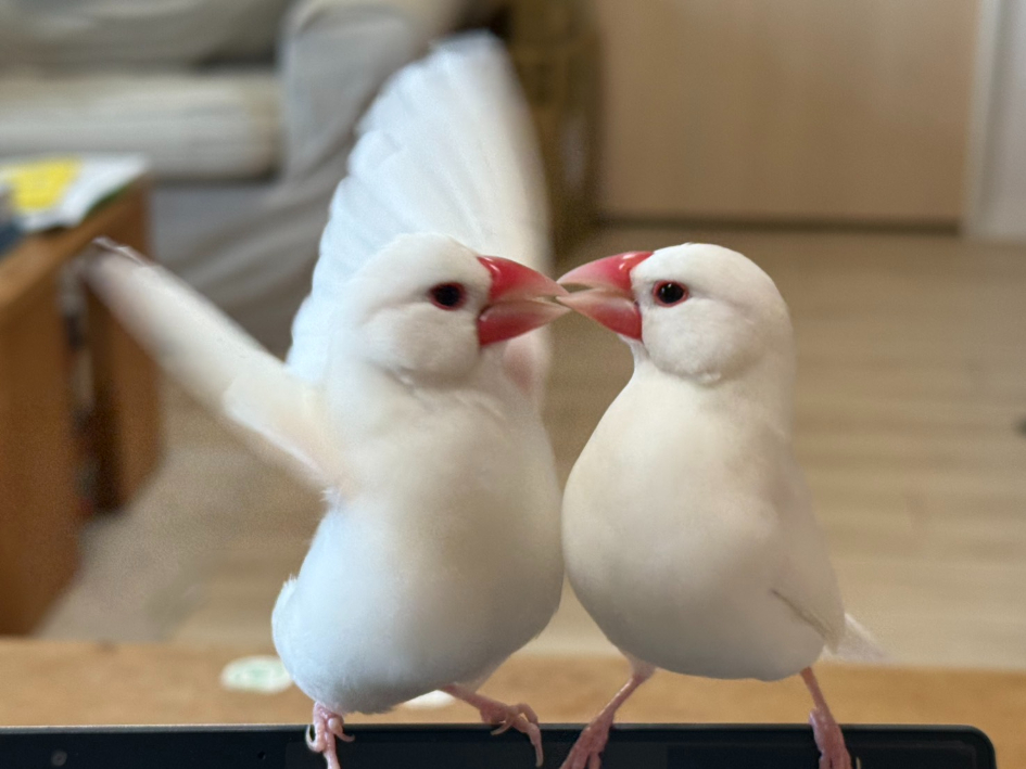 左:おこめ 右:おもち/白文鳥
