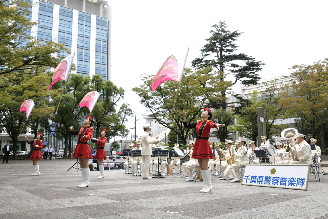 千葉県警察音楽隊カラーガード隊「アクア・ウインズ」によるフラッグなどの道具を用いた華やかな演技にも注目。