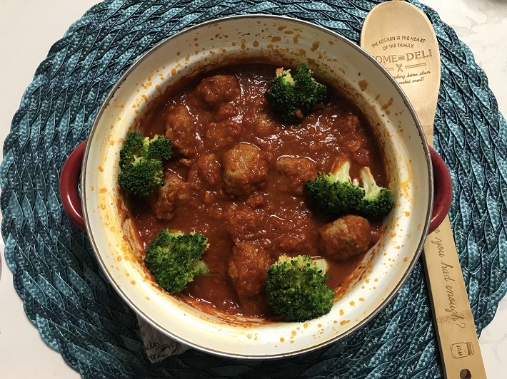 コストコのオーガニックマリナラソースと、このミートボールを鍋でコトコト煮込むだけで、手の込んだような本格的なトマト煮込みが完成!