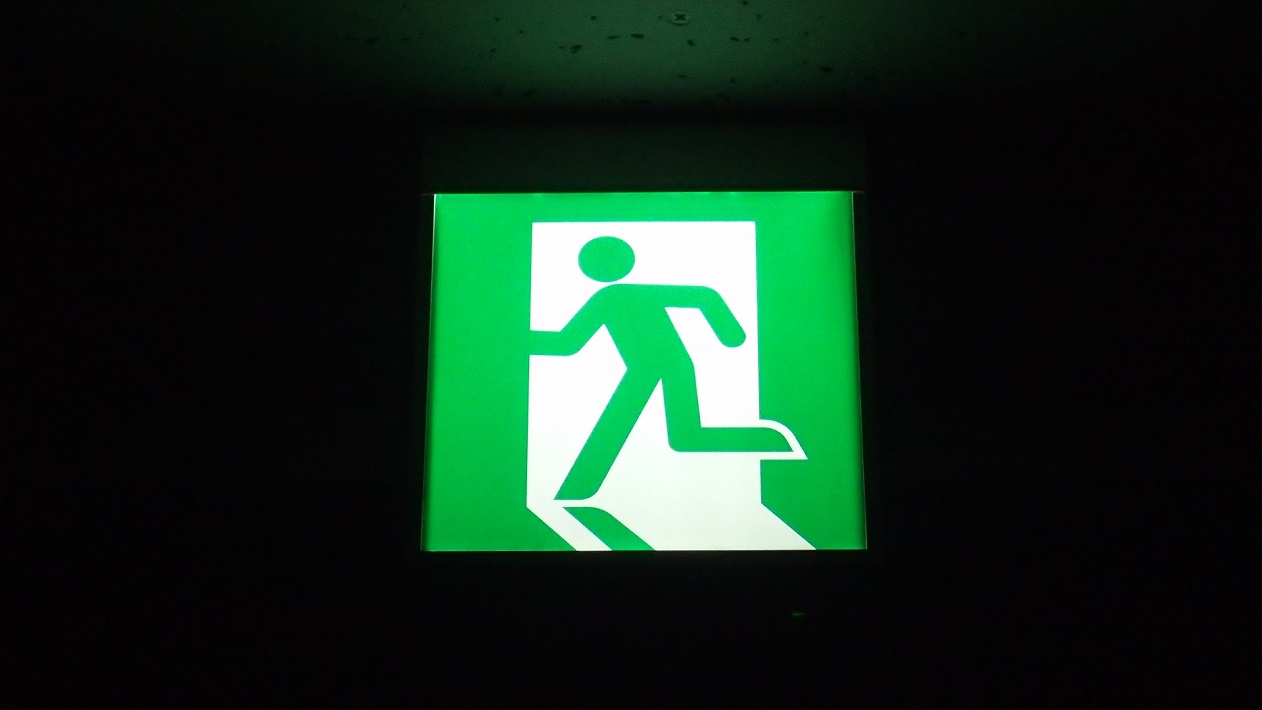 火災で発生した煙が漂っている部屋から脱出します。