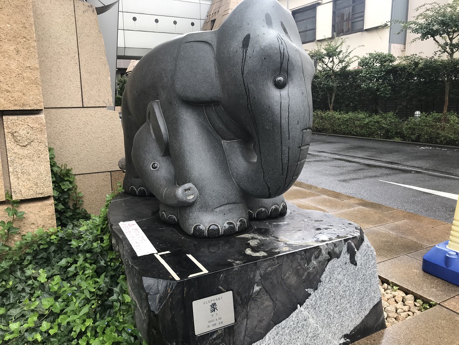 入り口には向かって左に父親象、右に母子の象(の像)。