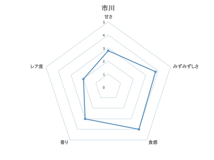 単なる個体差かもしれませんが、大振りで食べごたえがあったのも市川でした。