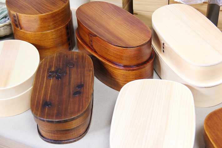 その他にも、佐賀県有田町の窯元から仕入れた和食器、栃木県鹿沼市で作られた桐のおひつやまな板、大分県日田市の下駄、そして女性人気が高い曲げわっぱのお弁当箱や山葡萄のかごなど、こだわりの国産品がズラリ。