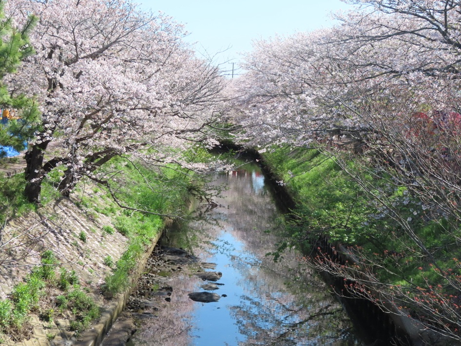 例年の開花時期は3月下旬から4月上旬。満開時に人々を魅了する約500本の桜並木のトンネルは圧巻です。川沿いで気温が低いためか、船橋市内の他のスポットより1週間ほど開花が遅いので、長く桜が楽しめます。
