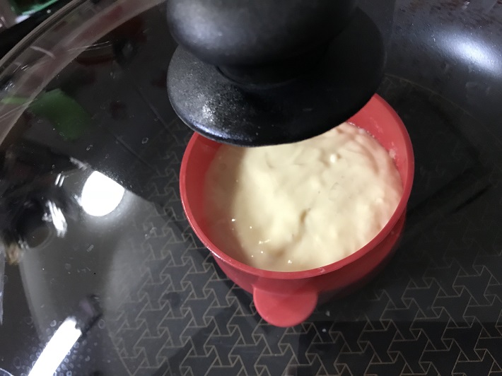 ❺ふたを開けて、シリコンの上の部分まで生地が膨らんできていたら、ひっくり返して約3、4分焼く