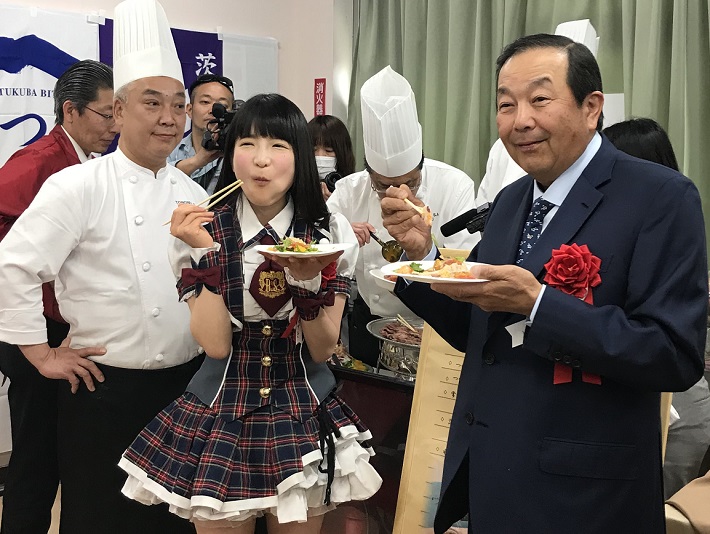 審査委員のもえあずさん、次に移動するのが名残惜しそうに「おいしいですね~」と笑顔いっぱい。