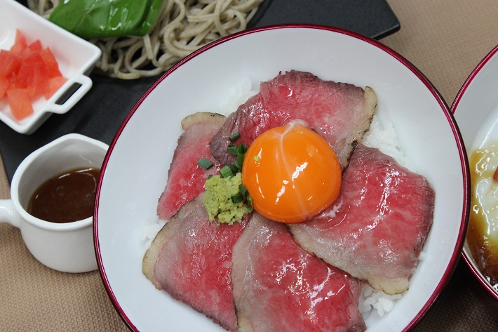 ④常陸牛 低温調理のローストビーフ丼 奥久慈卵と大子町の本わさびと共に