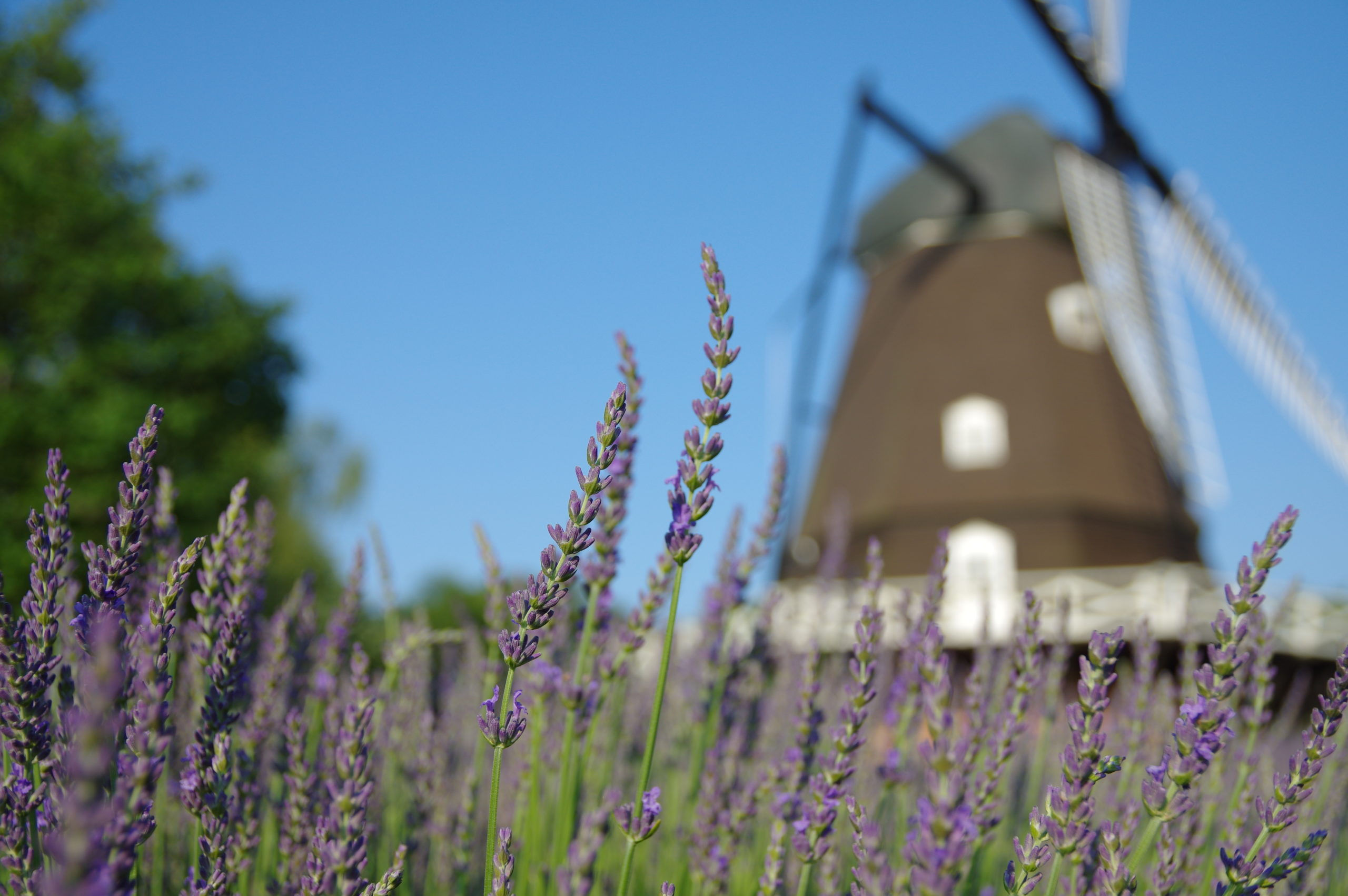 6月の園内はペチュニア、インパチェンス、ベゴニア、アンゲロニアなど約150種類10万株の草花で彩られます。中旬からは太陽の池、自然体験ゾーンなどのアジサイや、メルヘンの丘ゾーン風車近くのラベンダーなどが順次見頃を迎えます。ラベンダーは6月下旬、アジサイは7月中旬まで楽しめます。