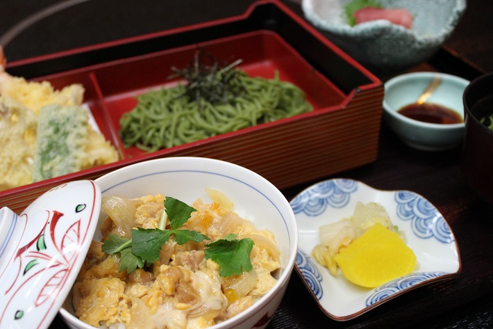 親子丼はふわふわの卵につつまれて優しい上品な味わいでした。天ぷらも衣がさくさくでおいしい!