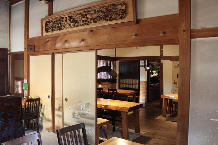 中古物件をリノベーションした店構えは、和モダンの古民家風です。