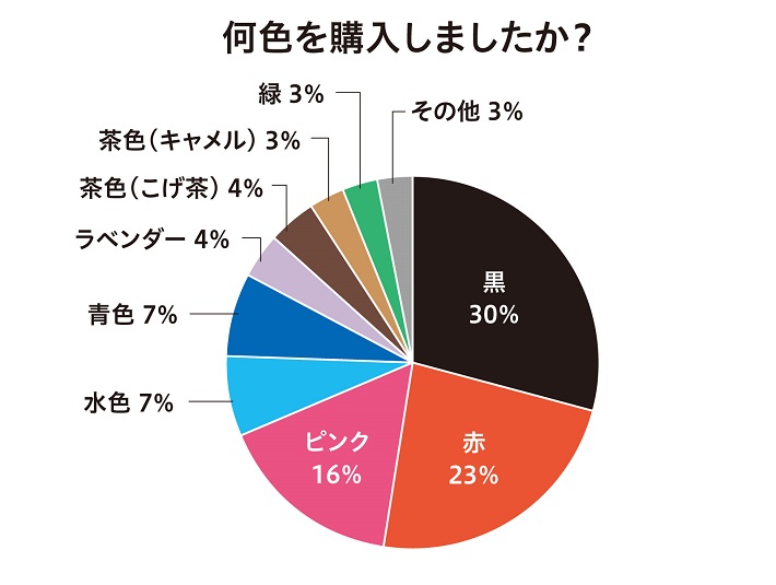 やはりランドセルの定番色である「黒」「赤」「ピンク」が上位に。