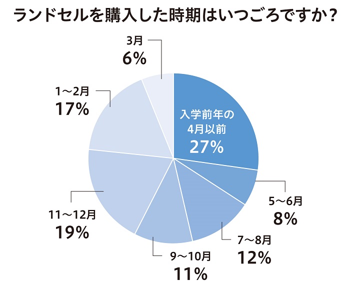 アンケート結果では「入学前年の4月以前」と意外と早めに購入した人が目立ちました。