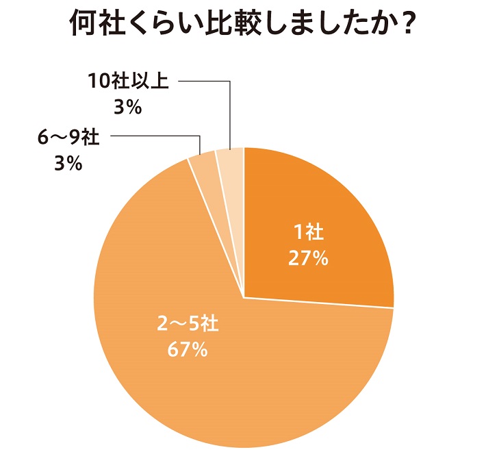 たくさんのメーカーがある中で過半数が「2~5社」を比較して選んだとの結果が。
