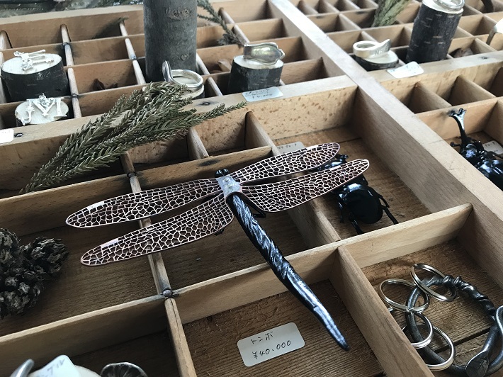 金属でこんなにも精巧な表現ができるのかと驚かされるトンボ。