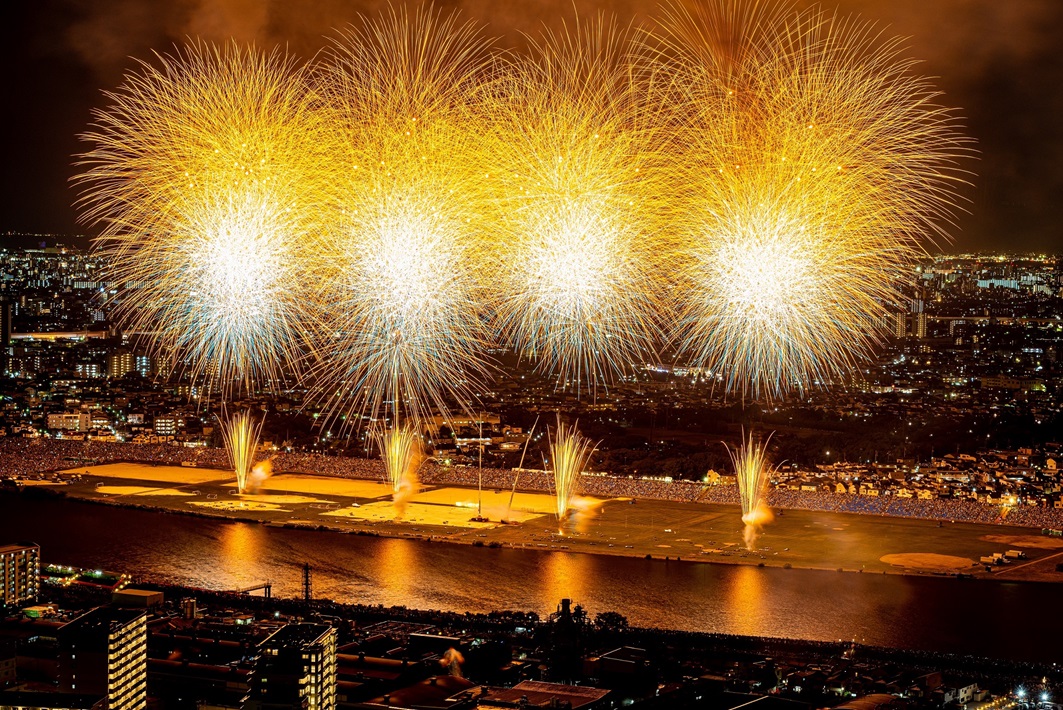 5秒間に1,000発もの花火が一気に打ち上がる大迫力のオープニングを皮切りに、テーマに合わせたBGMと花火の饗宴、優美な富士山の仕掛け花火など、こだわりの演出が魅力的。さらに、市制施行90周年を記念した特別な花火も打ち上がる予定。