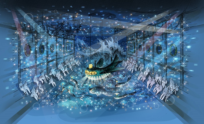 物語に登場する蒸気船をモチーフにした「海のオーケストラ号」は体験型のアトラクション。