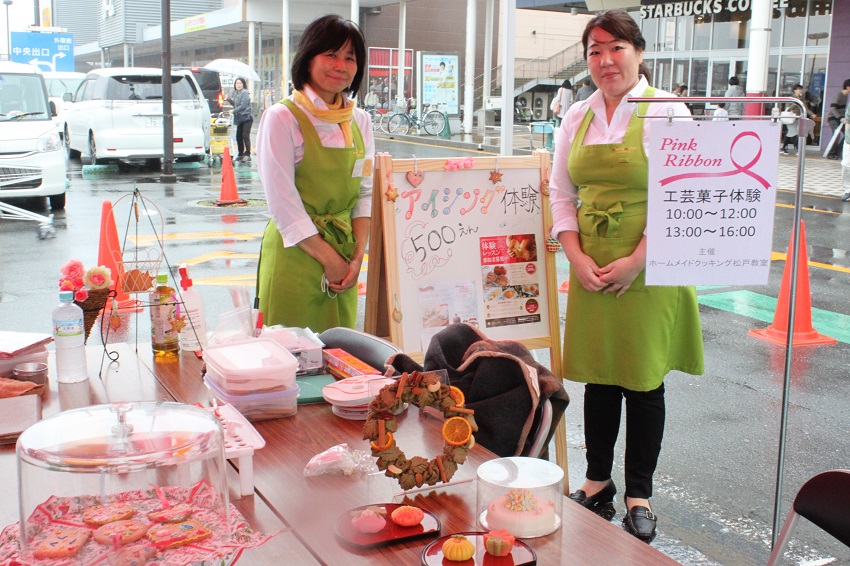 「ピアラシティみさと」(埼玉県)で行われた乳がん検診イベントでは、「ホームメイドクッキング松戸教室」主宰によるアイシングクッキー作りや、フラダンスショーが行われました。