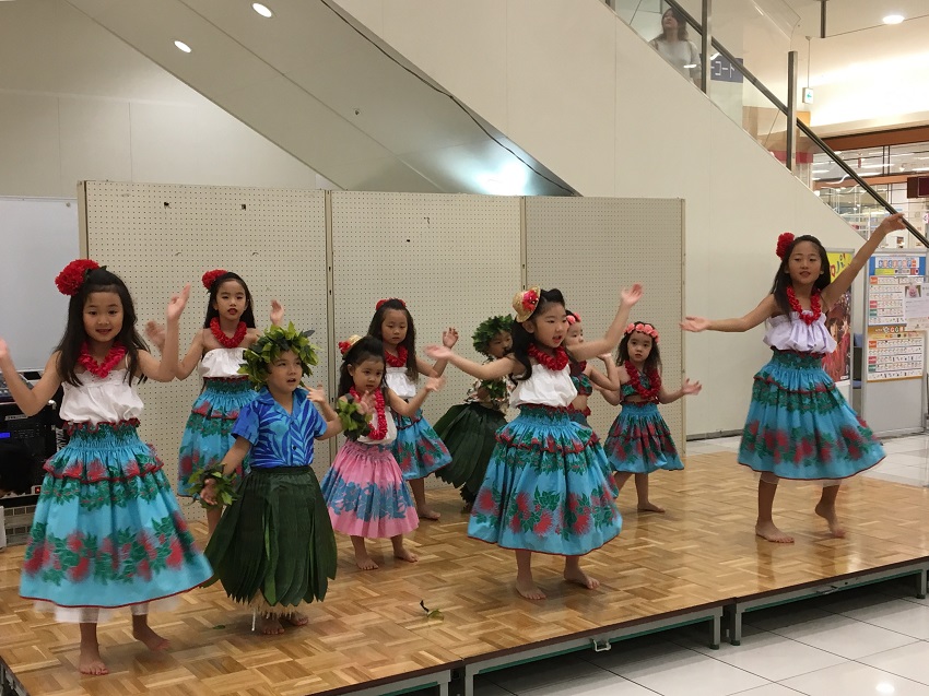 センターコートでは、フラダンスの講師であり、医療従事者でもあるラボママ水田静香さんのフラダンス教室「ハーラウ フラ アロハ ロコマイカイ」によるフラダンスの発表。