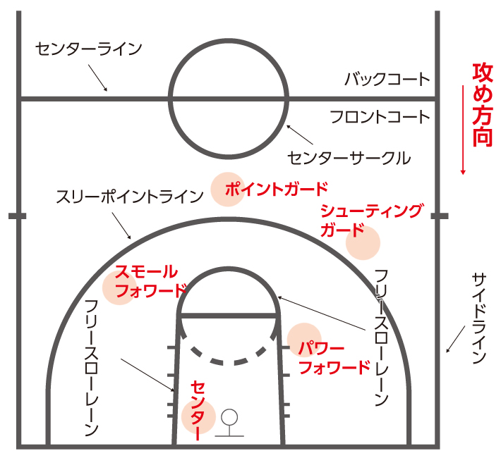 スリーポイントラインの外側からのシュートは3点、内側からのシュートは2点。フリースローは各1点(スリーポイントラインの外側でのファウルに対しては3回、内側でのファウルに対しては2回のフリースローができます)。