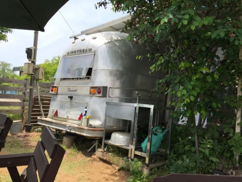 カフェは緑に囲まれた素敵なオープンテラスの席と、本物のトレーラーを改装した中の席があります。