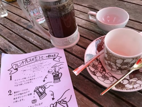 コーヒーはフレンチプレスで自分で入れるスタイルでした。