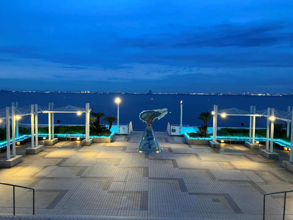 千葉の人気イルミネーションスポット2025-2026年版。千葉県木更津市「東京湾アクアライン「海ほたるPA」イルミネーション」。5階展望デッキからは東京湾360°の眺望を楽しむことができます。都心部の夜景とイルミネーションを同時に楽しめるのは海上パーキングエリアならでは! イルミネーションやフォトスポット、夜景を背景に撮影をして、海ほたるでの思い出を作ってみてはいかがでしょうか。