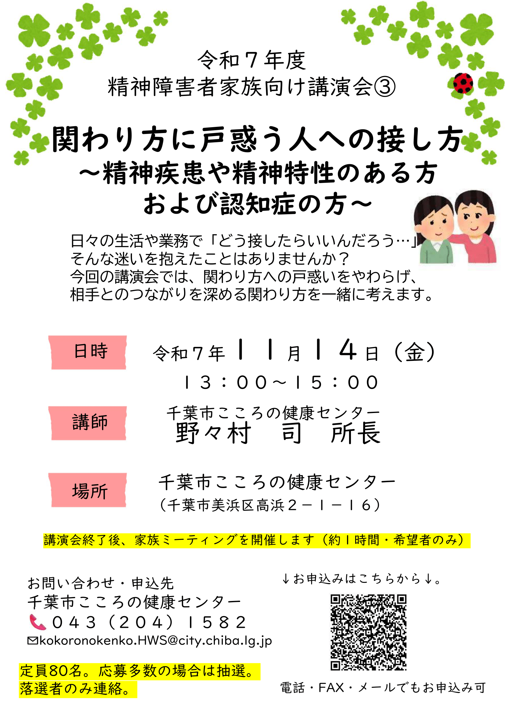こころの健康センターの催し 精神障害者家族向け講演会