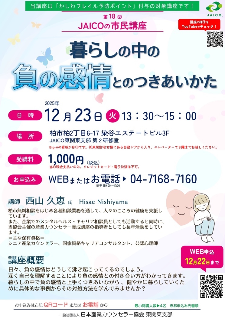 【第18回JAICOの市民講座】暮らしの中の負の感情とのつきあいかた