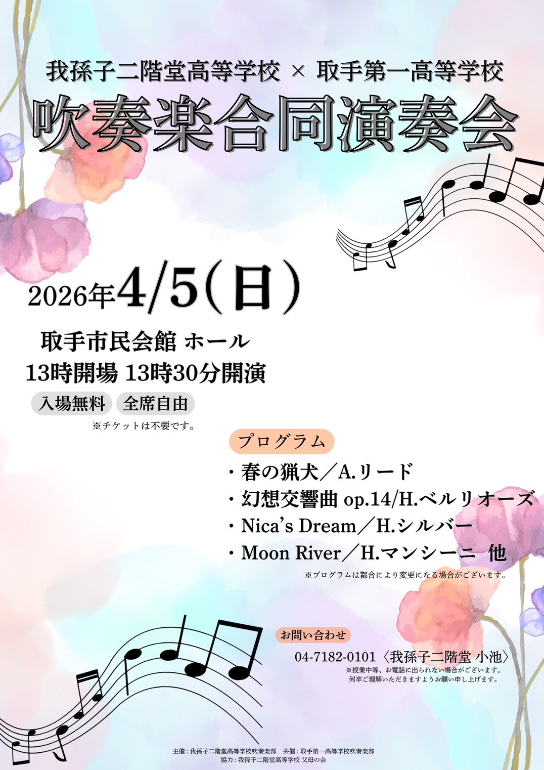 我孫子二階堂高等学校・取手第一高等学校 吹奏楽合同演奏会
