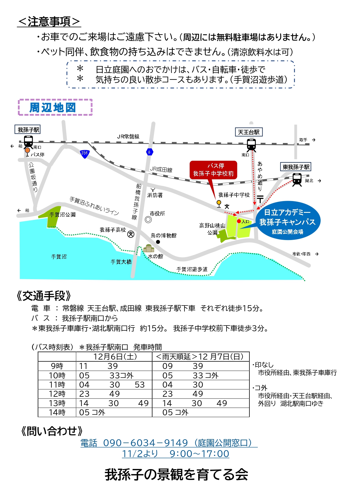 今年も(株)日立アカデミーのご厚意で、我孫子の原風景をとどめる自然庭園を巡り、錦秋の秋をご堪能下さい