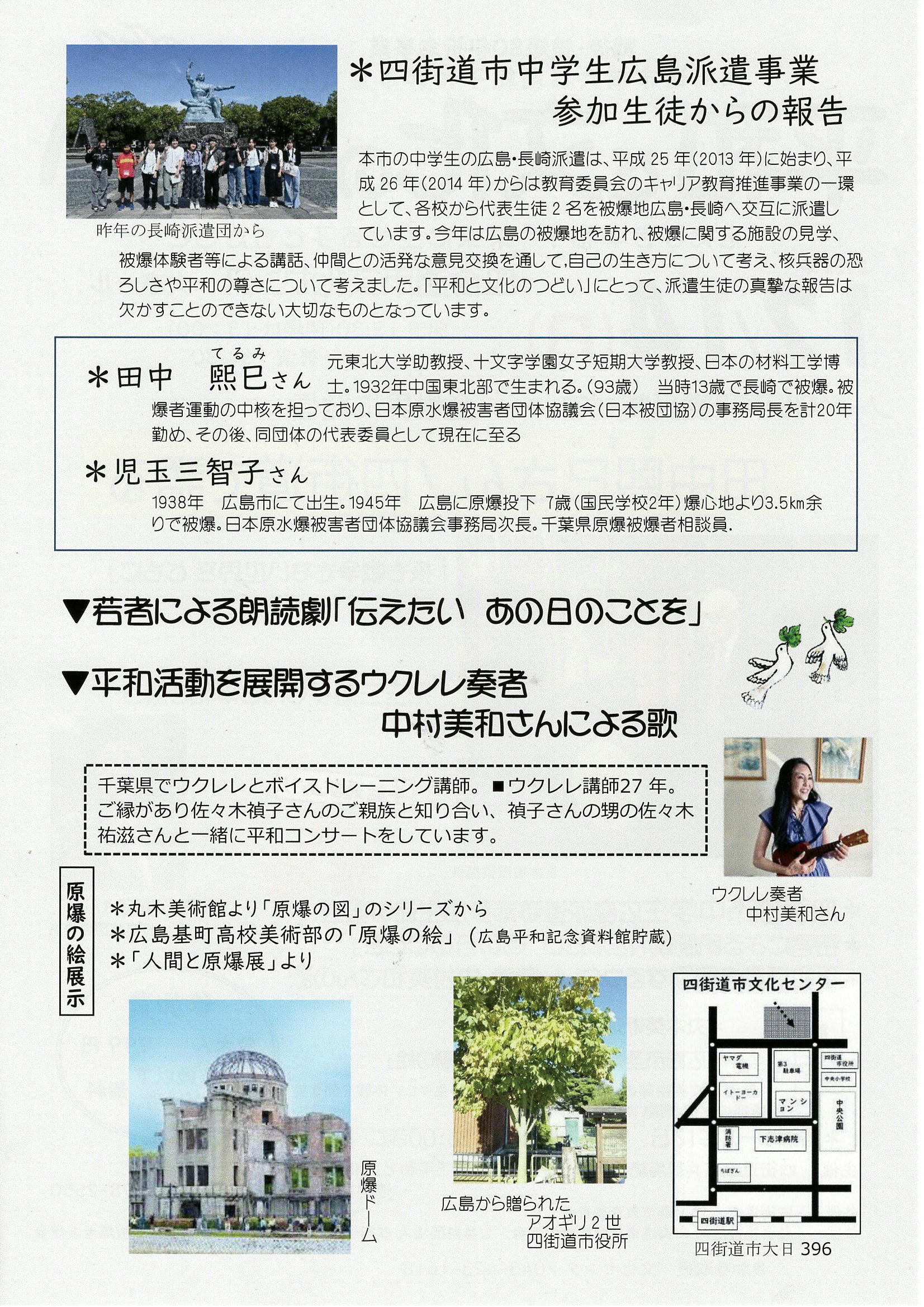 戦後・被爆80年記念事業 四街道市核兵器廃絶平和都市宣言42周年 「平和と文化のつどい」