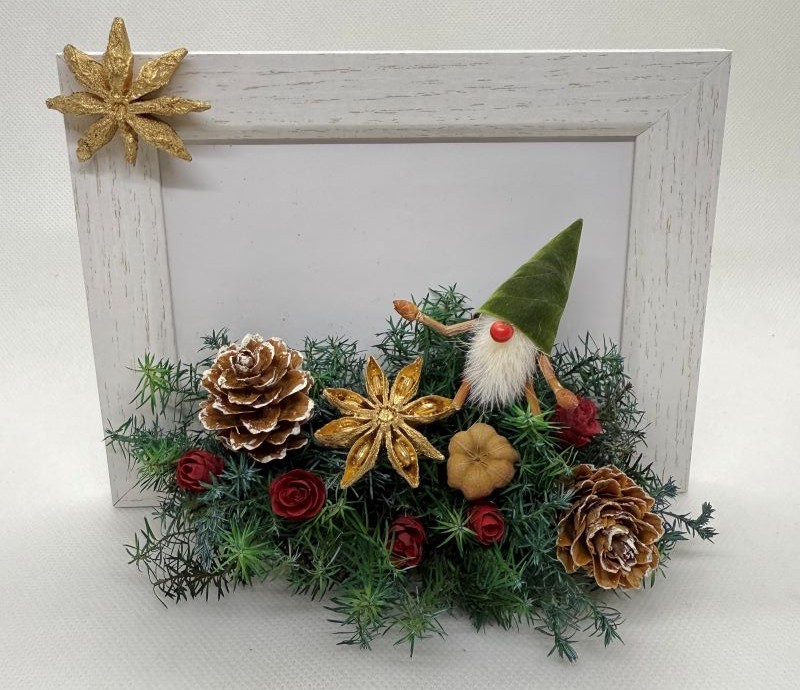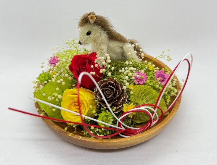 プリザーブドフラワーを使った、クリスマスやお正月を彩るアレンジメントです。