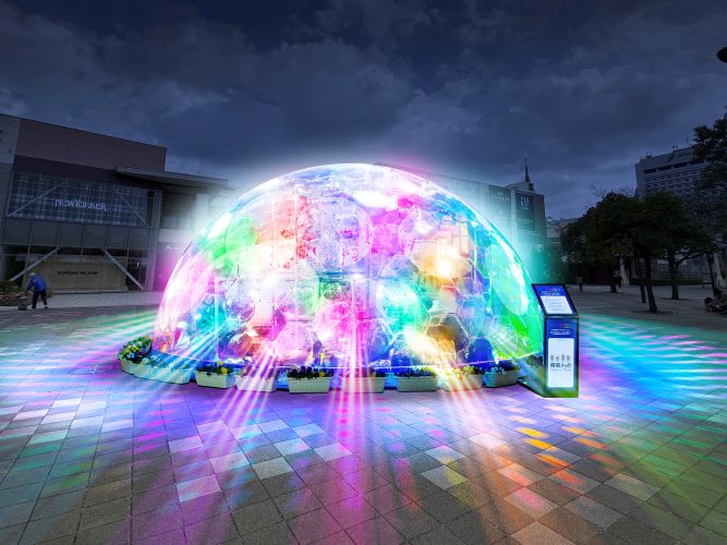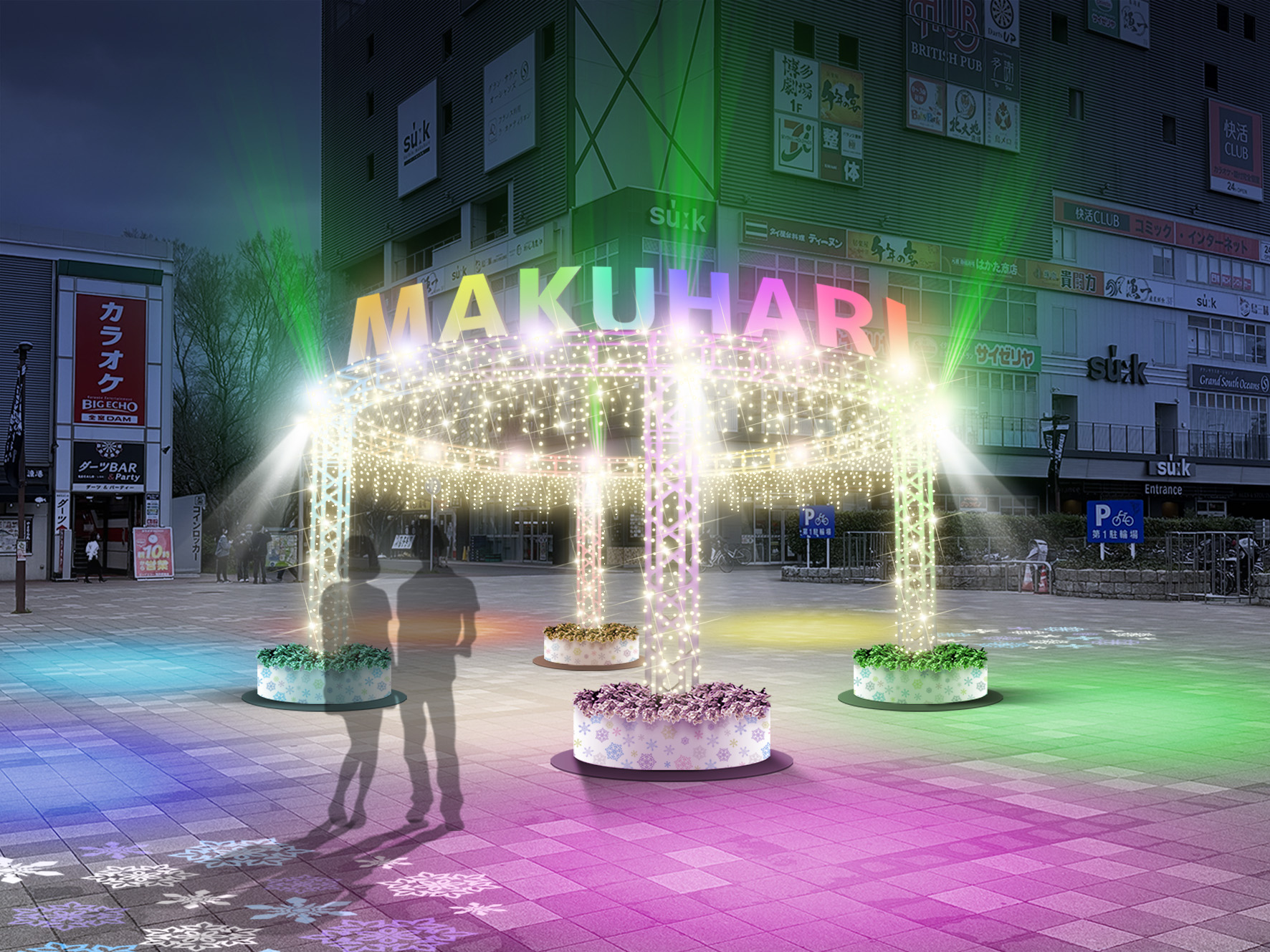 七色の光のハーモニーをテーマに、11月14日(金)から1月31日(土)の79日間、海浜幕張駅前に、今回全面リニューアルによりさらに輝きを増した「レインボードーム」と、幕張新都心が多様な人・多様な活動を受け入れ、発展し続けるまちであることを表現した「レインボーサークル」が、夜空にちりばめた子どもたちの光るアート作品とともに、幕張の夜をこれまで以上に華やかに彩ります。色とりどりに煌めく幕張新都心で冬のひとときをお楽しみください。