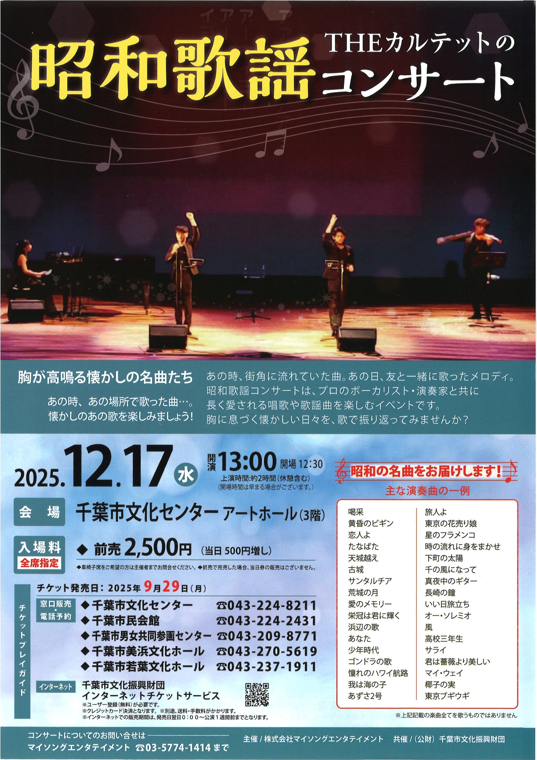 あの時、街角に流れていた曲。あの日、友と一緒に歌ったメロディ。 昭和歌謡コンサートは、プロのボーカリスト・演奏家と共に長く愛される唱歌や歌謡曲を楽しむイベントです。 胸に息づく懐かしい日々を、歌で振り返ってみませんか?