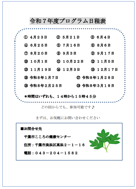 - ホームページ: https://www.city.chiba.jp/hokenfukushi/koreishogai/kokoronokenko/2019ikp.html
