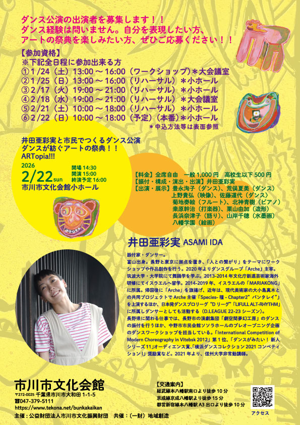 市川市文化会館 井田亜彩実と市民でつくるダンス公演ダンスが紡ぐアートの祭典!!ARTopia!!!
