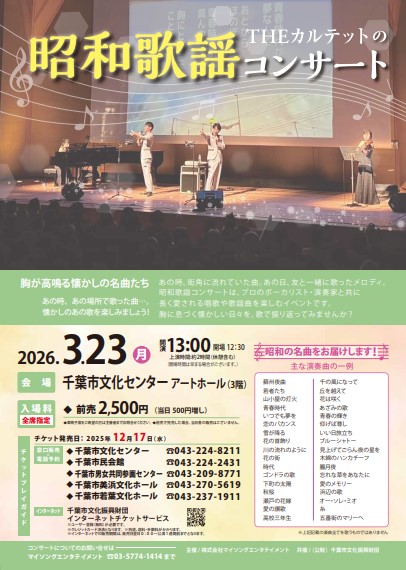 - 先着160人(全席自由)千葉市在住・在勤・在学の方