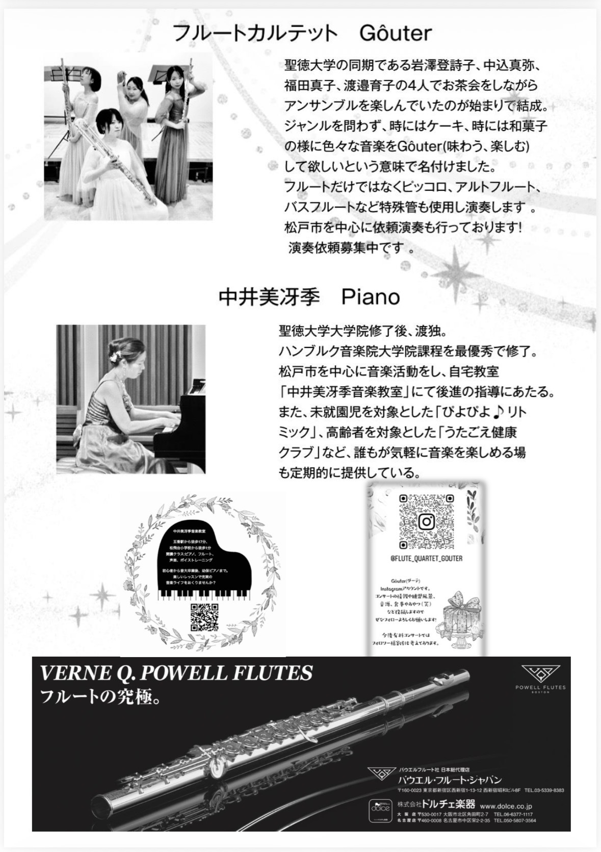 - ホームページ: https://www.instagram.com/flute_quartet_gouter?igsh=a21nZWhxbnF2cmNh&utm_source=qr