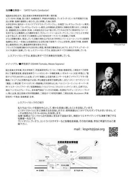 メゾ・ソプラノの押見朋子さんをお迎えし、バッハのカンタータ54番ほか、リュリ、ハイドン、アルビノーニを佐藤雄一氏の指揮で演奏します。