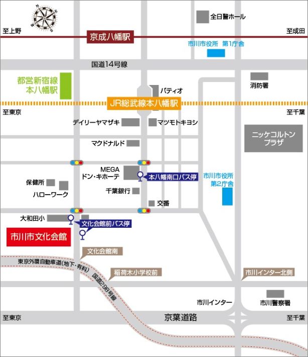 JR総武線本八幡駅南口より徒歩10分 京成線京成八幡駅より徒歩15分