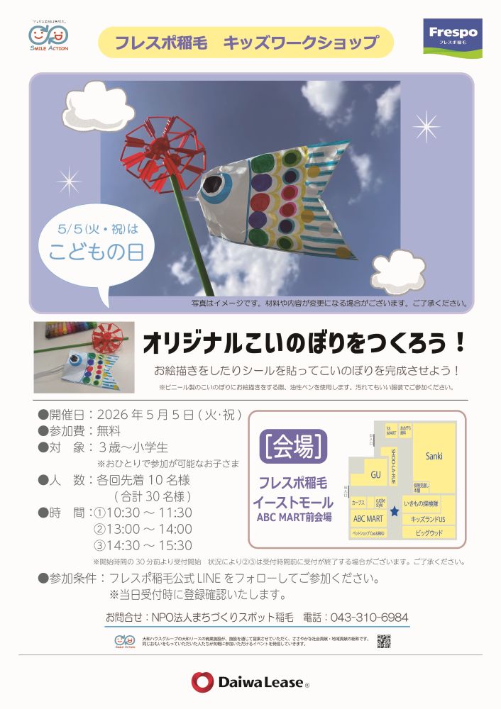 - 備考:状況により②13:00~14:00 ③14:30~15:30は受付時間前に終了する場合がございます。ご了承ください。 ●参加条件:フレスポ公式LINEをフォローしてご参加ください。 ※当日受付時に登録確認いたします。