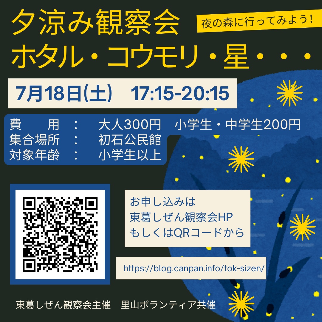 夕涼み観察会 ホタル・コウモリ・星…