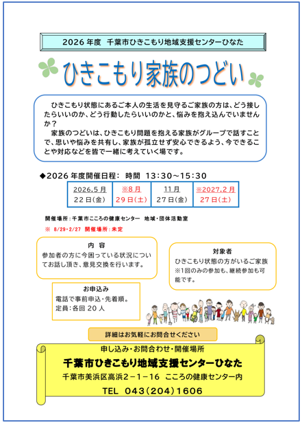 千葉市 ひきこもりの問題を抱える家族のつどい