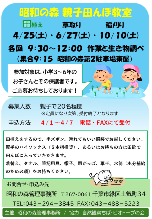 昭和の森の催し 親子田んぼ体験