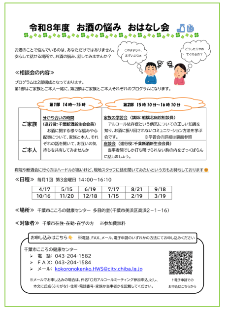 こころの健康センターの催し お酒の悩み おはなし会