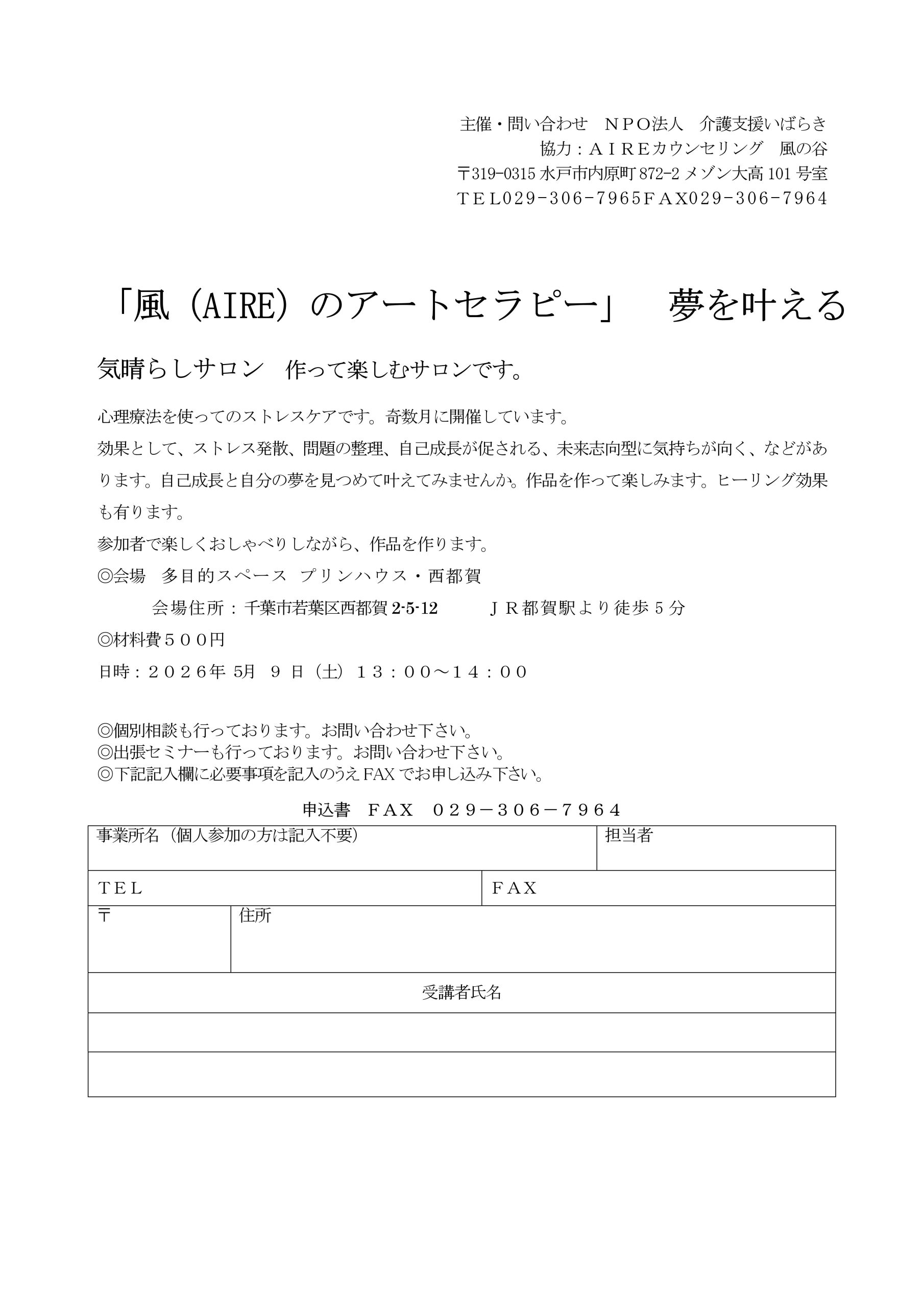 風のアートセラピー 気晴らしコース