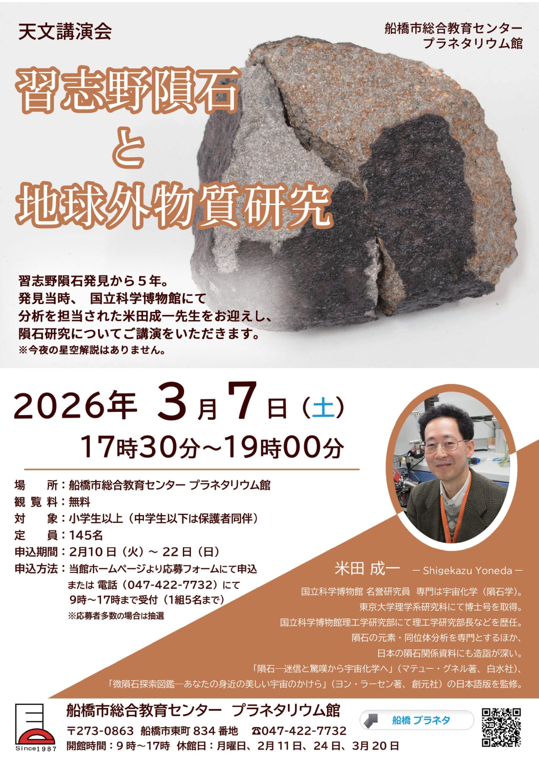 天文講演会「習志野隕石と地球外物質研究」