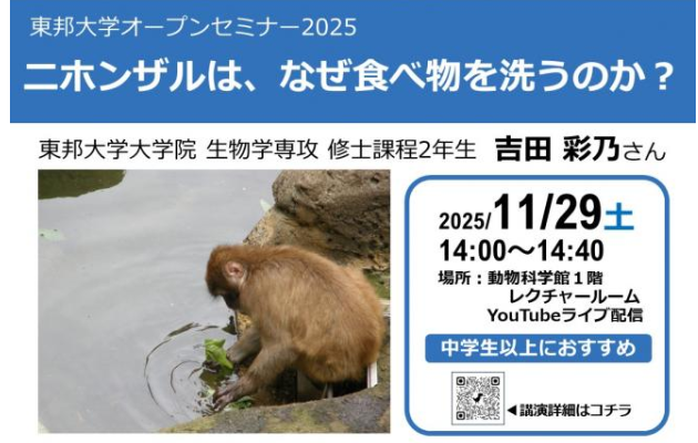 千葉市動物公園の講演会 東邦大学オープンセミナー「ニホンザルは、なぜ食べ物を洗うのか?」